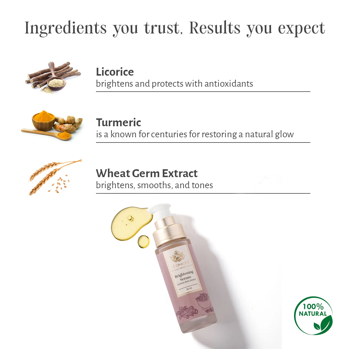 The light serum is a unique blend of science-backed processes & traditional ingredients like Licorice Root Extract. Just a few drops of the serum are potent enough to counter the effects of environmental stressors & reduce pigmentation, tan & discoloration.