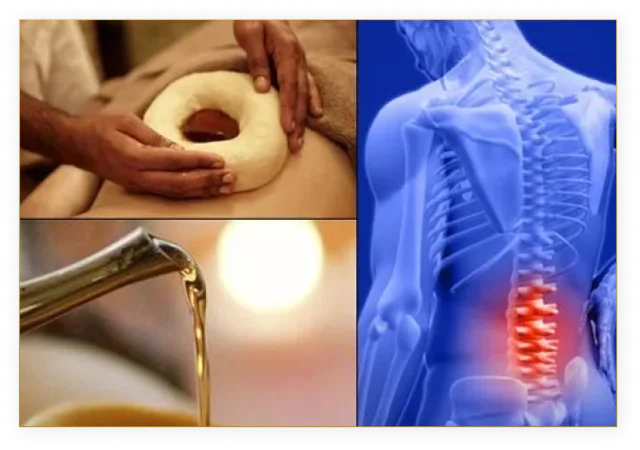 In Pristha vasti continuous warm oil application over the whole spine area for a period of 30 to 4o min increases the blood flow over the back region and helps to get the good nutrition and pain relieving bio-chemicals of the affected area. It also helps to reduce local toxins, waste materials and pain producing bio-chemicals from the affected area.